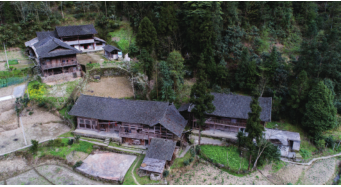 現(xiàn)有民居 5 棟,11 戶,30 余人,主要姓氏為張姓,主體民族為漢族。龍須寨因山梁走向似龍形而得名,原為龍姓苗民世居之地,現(xiàn)多為張姓人家。房柱、房梁用了多根楠木,中堂還供有一清代神祖牌。在龍須寨主民居的大門上方有一牌匾,上刻“瑞映金童”,是張氏祖先張漢松在清咸豐九年生子后,整竹米酒時受親友所贈。此處還有 3 棵相互依附的風(fēng)水古樹,分別是酸棗、巖柏和紅豆杉,被當(dāng)?shù)鼐用癞?dāng)神一樣敬奉。這也預(yù)示板夾溪以土家族、苗族、漢族三大民族和諧共生。