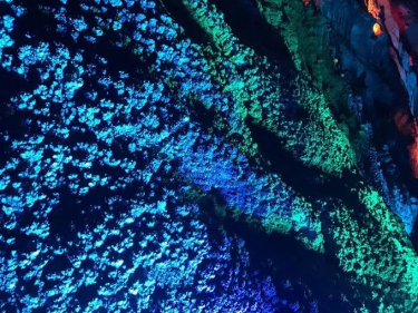 兩側(cè)峰巒起伏,鬼斧神工,呈現(xiàn)出 中國 西南典型的喀斯特地貌,40多個奇特的礫巖溶洞品質(zhì)上乘,世界少有,洞內(nèi)常年恒溫18℃。