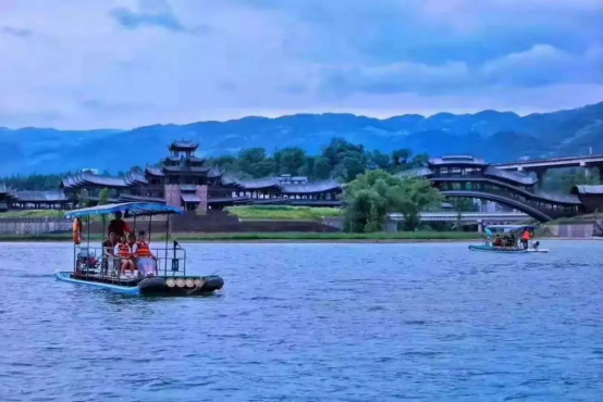 游古鎮老街,品土家美食,看后河古戲,聽蓬江水音。橫跨兩江(河)、氣勢恢宏的濯水風雨廊橋被中國廊橋建筑研究會評為世界第一風雨廊橋,全長658米,橋身為純木質結構,分橋、塔、亭三部分,不釘不卯,充滿濃郁的土家風情,橋身上的憑欄雕刻更是千姿百態,栩栩如生。