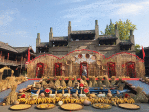 濯水景區以“喜獲豐收·歡度國慶”為主題,用農作物、農耕工具等營造國慶氛圍,特設美食特色展示區以及游戲互動區,場景設置與濯水民俗文化完美融合。