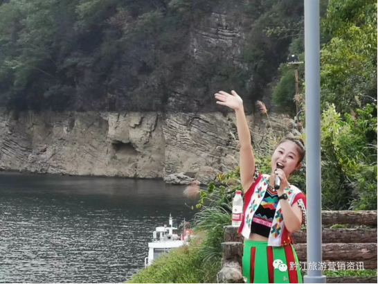 聽,土家十三寨寨主覃誠芳也來到了神龜峽景區,正在在吊腳樓上唱著動聽的民歌,歌聲悠揚,在峽江之上久久回蕩!在小編看來,這奇美秀麗的神龜峽是你放空身心,回歸自然,感受純樸民風的不二之選!