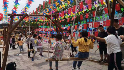 以“喜獲豐收 歡度國慶”為主題重慶黔江獻禮祖國70華誕文化旅游活動在濯水古鎮核心景點內隆重舉行,景區工作人員利用金黃色的玉米、南瓜,大紅的辣椒,以及綠豆、稻草、玉米桿等土地上的實物,增設了豐收喜慶的生活新場景,制作完成了稻草人、“福祿壽喜財”、白虎、玉米簾、蹺蹺板、網紅秋千等景觀,營造出了濃濃的節日氛圍,成為了游客爭相拍照打卡的網紅地標。