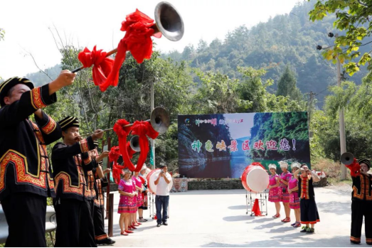 同時,景區還組織了巡游互動活動,向游客推廣普及非物質文化遺產南溪號子、土家山歌等。在濯水景區喝攔門酒、品黔江雞雜、唱土家山歌、跳擺手舞,與毛澤東特型演員互動,重現開國大典盛況,展現了“民族大團結、和睦一家親”的生動場景。