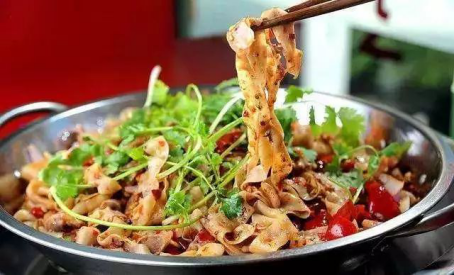 黔江雞雜煮熟后,用文火邊煮邊吃