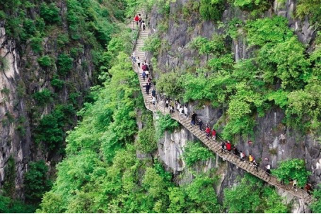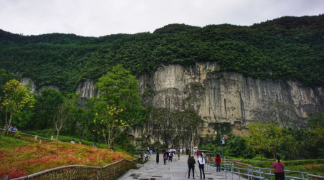 這里,有大世界基尼斯之最——高達123米的巨幅摩崖觀音像;有驚險絕倫、垂直高度逾300余米的懸崖絕壁棧道;有回音壁、慈航橋等驚奇美妙的體驗。