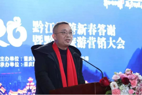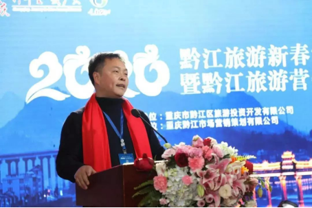 黔江區文化和旅游發展委員會主任龐一勝發表講話,他表示,在旅游界的各位同行的共同努力下,黔江旅游產業實現了突破性的發展,通過策劃大量創新活動和營銷大會緊扣黔江特點的系列活動,良好展現了清新黔江的文旅魅力,提高了外界對黔江區的認知度。