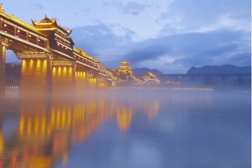 濯水景區(qū)位于重慶市黔江區(qū)東南部,地處烏江第一大支流——阿蓬江畔,為阿蓬江國(guó)家濕地公園的重要組成部分,面積4.8平方公里,渝懷鐵路、包茂高速、319國(guó)道穿境而過(guò),交通極為便利。景區(qū)內(nèi)江河交匯,濯水古鎮(zhèn)風(fēng)華悠遠(yuǎn),風(fēng)雨廊橋跨江河、連兩岸、通三地,似仰天長(zhǎng)嘯飛龍欲絕塵而去;蒲花暗河蜿蜒曲折,婀娜多姿,水上天生三橋猶如鬼斧神工。