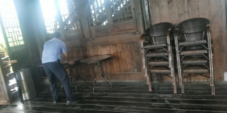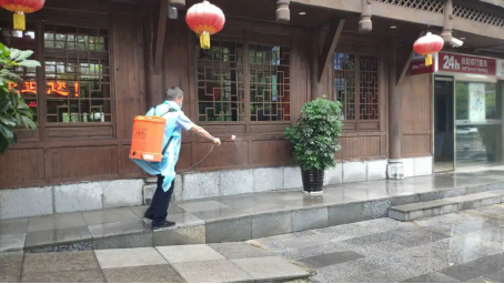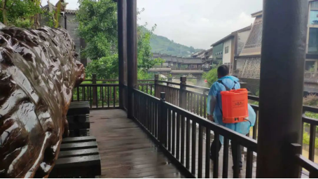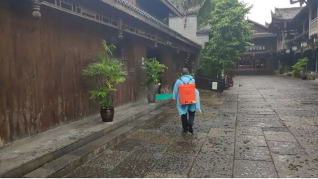 雨勢減小、水位稍有下降景區組織工作人員對古鎮街道、酒店等公共區域進行全面消毒,嚴防細菌傳播