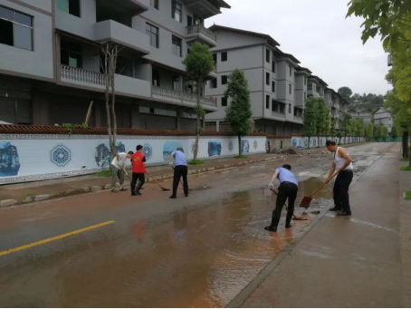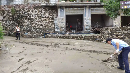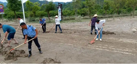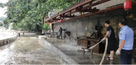 直至629日雨勢減小、水位下降水清退去,留下一片泥濘奮斗在一線的工作人員們日以繼夜對景區受災后環境衛生開展突擊清理工作疏通河道、清理路面砂石