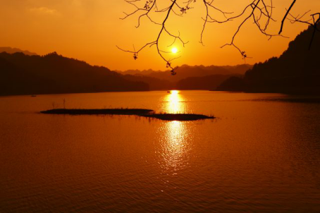 深秋的晚霞染紅天邊,這是獨屬水市的秋色。