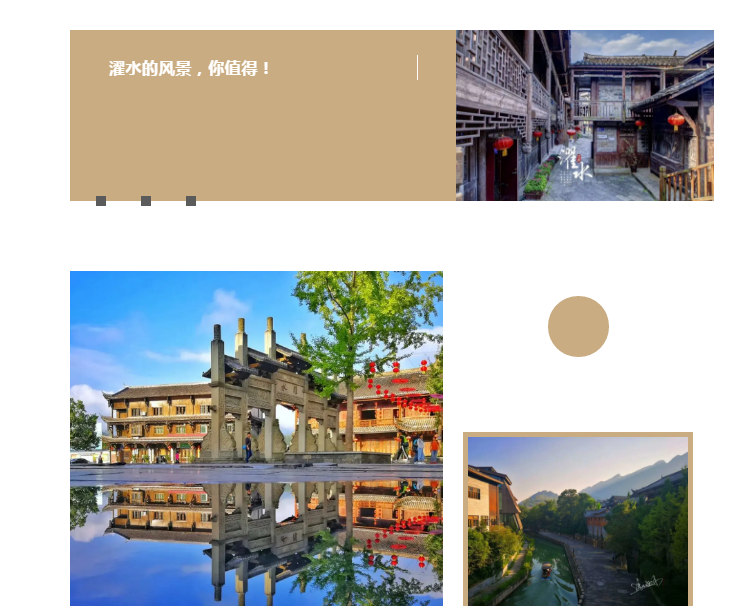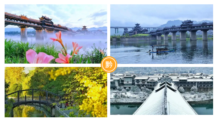 四季濯水,春天濯水花田花開爛漫,春和景明,一派勃勃生機子像;夏天氣清風朗,陽光明媚舒爽,沒有大城市的燥熱,只有廊橋流水的閑適;秋季古墻老街光影斑駁,金色的銀杏花海把古鎮點綴成金色的海洋,沒有寂寥的秋,只有動人的一抹艷麗色彩;冬日的濯水小雪紛紛,銀裝素裹,細膩與柔美兼具,頗有一番洗盡鉛華的冷艷美感。