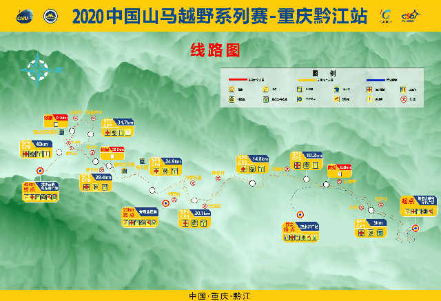 本次賽道數(shù)據(jù),是基于手動(dòng)校正過的賽道軌跡,按每5m設(shè)定等距坐標(biāo),每個(gè)坐標(biāo)取標(biāo)準(zhǔn)海拔,賽道的長度、爬升及下降等數(shù)據(jù)均基于坐標(biāo)數(shù)據(jù)計(jì)算而得,并手動(dòng)修正了部分特殊地形地貌(如溶洞、峽谷、陡崖等)的數(shù)據(jù)偏差。因計(jì)算方法的不同,官方賽道數(shù)據(jù)與常用的手表或手機(jī)app記錄的軌跡數(shù)據(jù)存在差異。