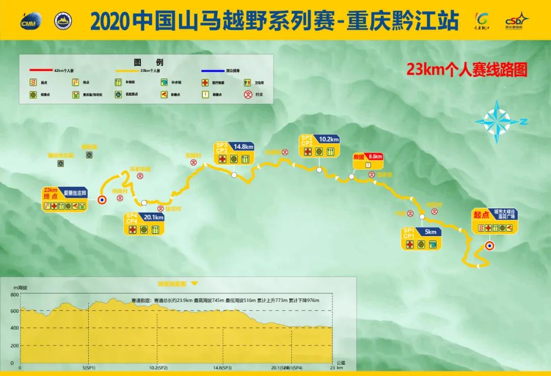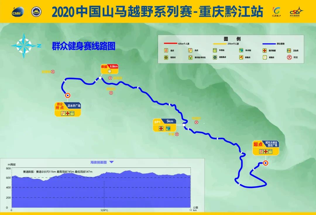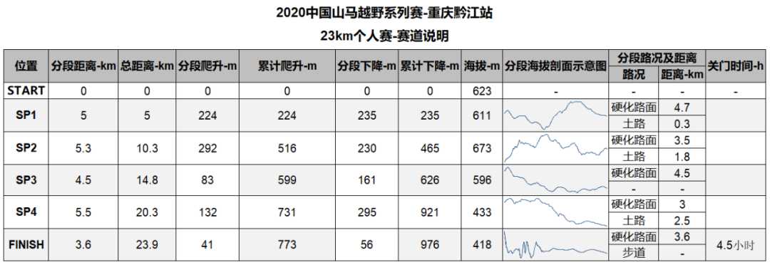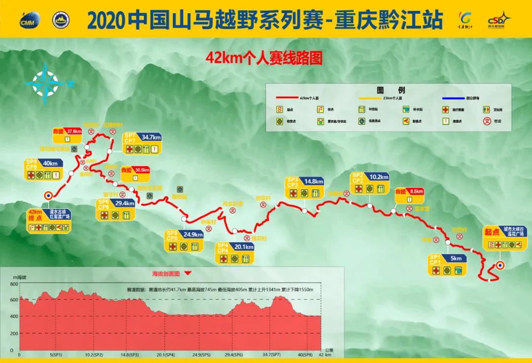 42KM個(gè)人賽總長約41.7km,累計(jì)爬升1341m,累計(jì)下降1550m,最高海拔745m,最低海拔405m,硬化路面約18.3km(43%)。23KM個(gè)人賽總長約23.9km,累計(jì)爬升773m,累計(jì)下降976m,最高海拔745m,最低海拔516m,硬化路面約11.53KM(50%)。群眾健身賽總長約11km,累計(jì)爬升243m,海拔最高點(diǎn)723M, 最低海拔547m,硬化路面4.45km(40%)。