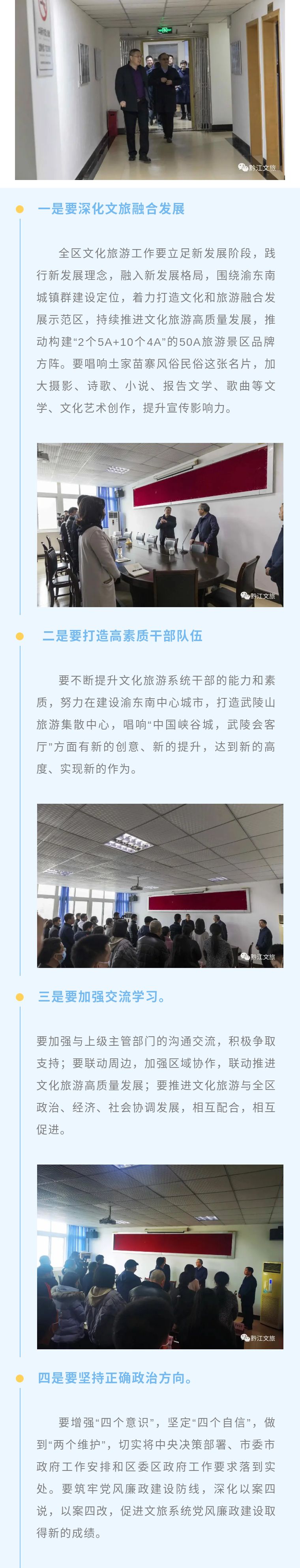 2月18日,春節過后上班第一天,區委書記余長明同志率隊看望慰問區文化旅游委全體干部職工,送上新春的問候和殷切祝福,并對文化旅游系統干部職工把握新形勢肩負新期望,提出了新目標新要求。區委常委、組織部長陳貴斌陪同看望慰問。