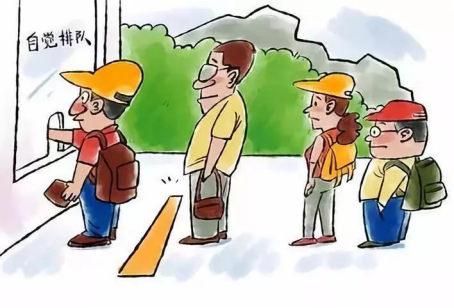 在景點游玩時應(yīng)遵守公共秩序,不并行擋道,不亂插隊。推己及人,方便大家。在游客較為擁擠時,更要謙讓回避,保證安全。